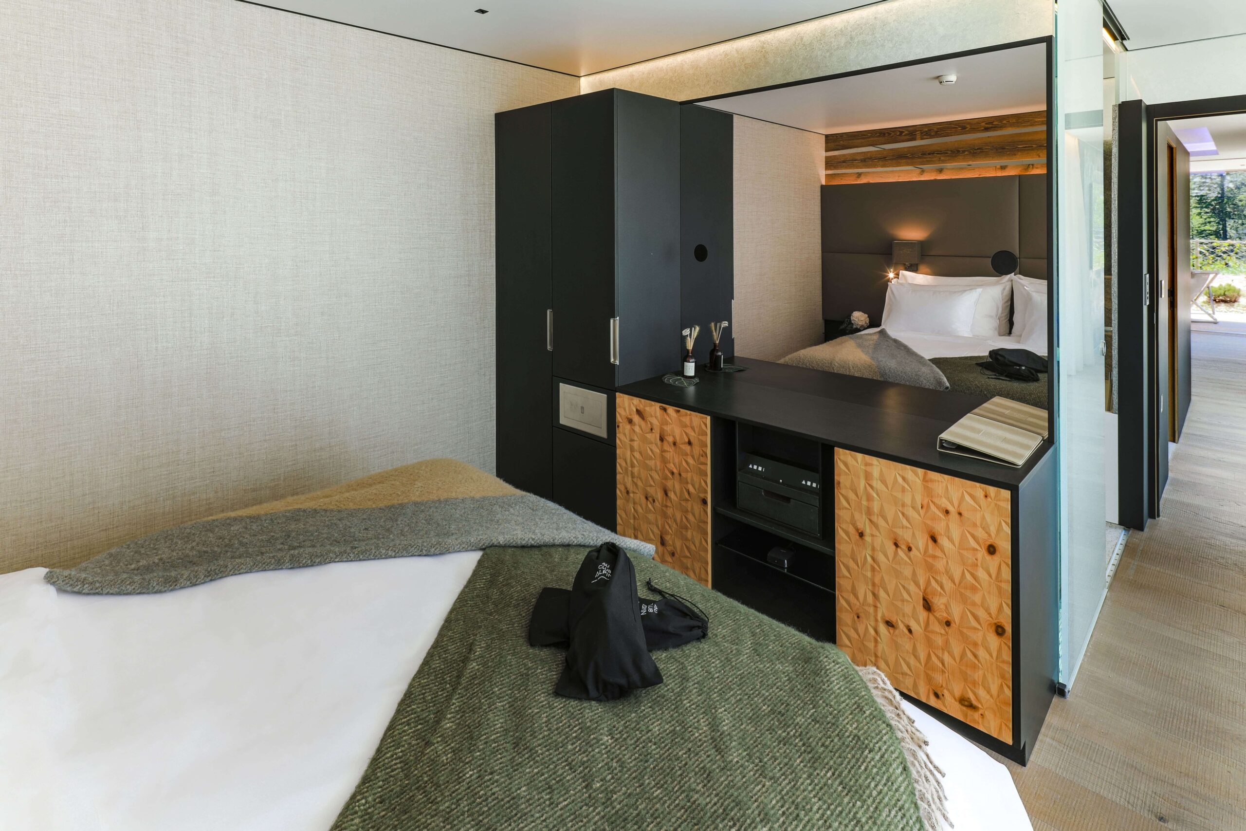 Nos deux suites, Les Combins et Les Clochers rendent hommage à leurs noms évoquant chacun un sommet mythique de la région. Elles offrent une très belle surface de 115 m2 et abritent deux chambres séparées, un espace salon et une cuisine.